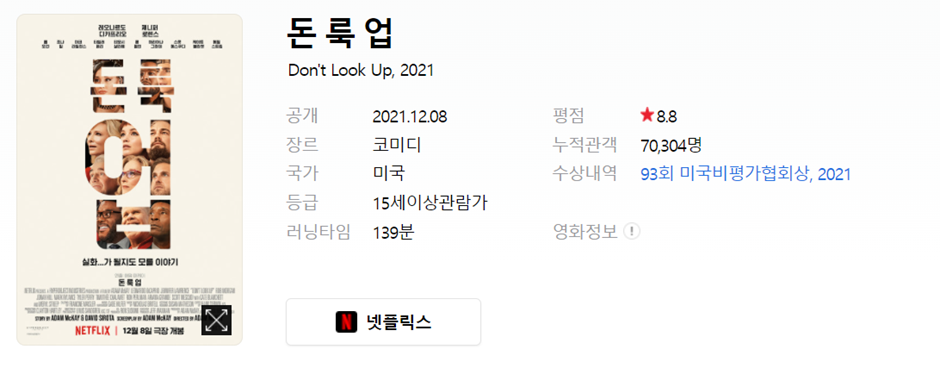 출처-다음 영화 ‘돈 룩 업’ 주요정보