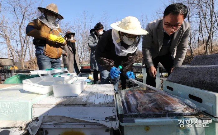 농가들은 월동 중인 벌을 깨워 먹이를 주는 '봄 벌 깨우기' 과정에서 꿀벌이 벌통에서 사라진 것을 확인했습니다. 월동 기간 벌통 밖을 벗어난 꿀벌들이 다시 벌통으로 돌아오지 못하고 폐사한 것으로 추정되었습니다.