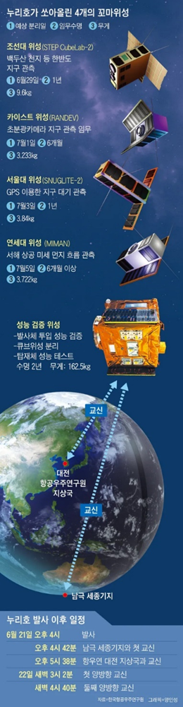 조선일보 이영완 기자, <누리호 마지막 큐브 위성도 우주 진입>, https://www.chosun.com/economy/science/2022/07/06/AKJJXCWRINFTZD5JURRZHLF7DA/