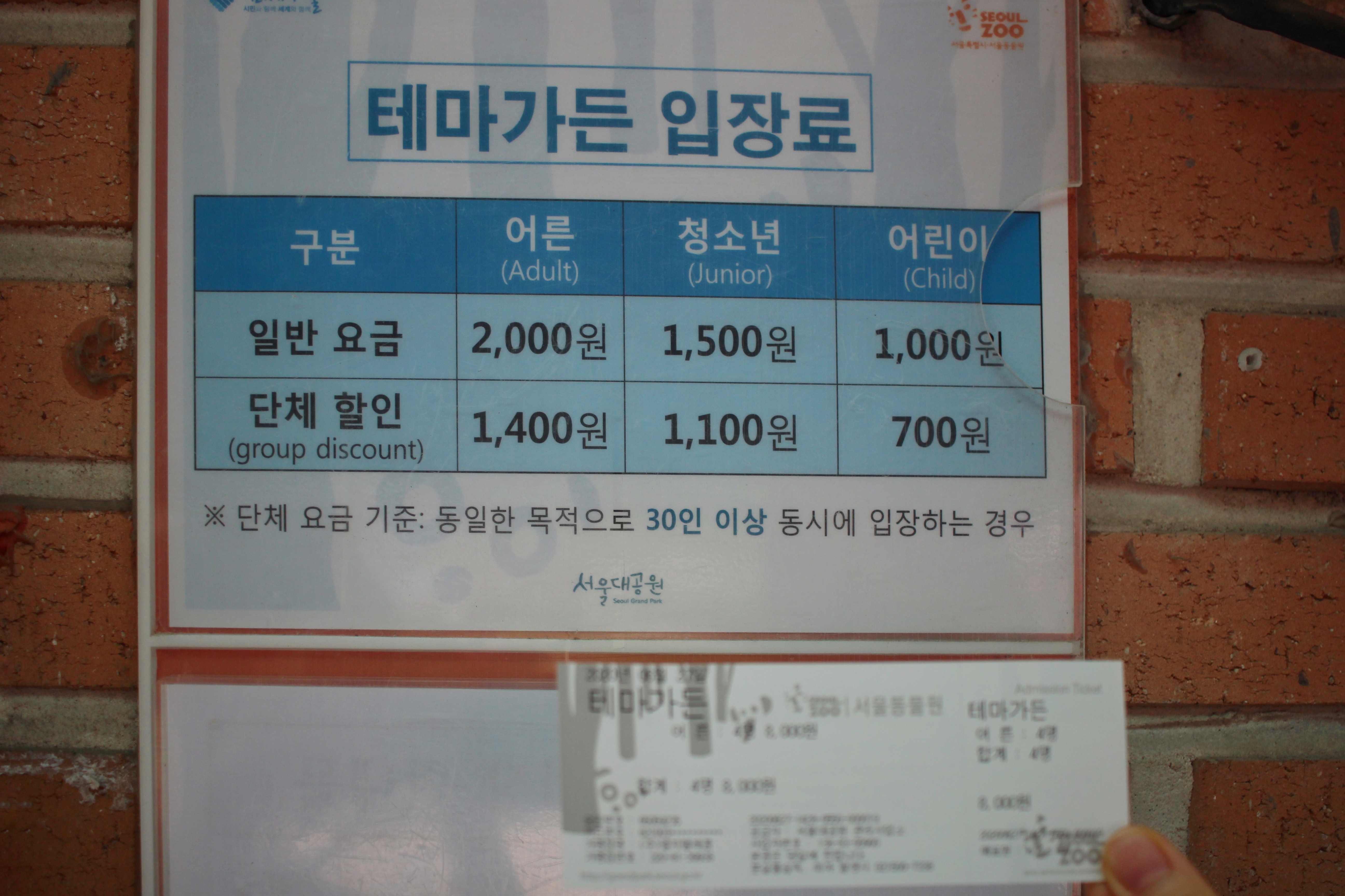 장미원 입장을 위해서도 따로 금액을 지불해야 하며, 금액은 아래 사진에서 확인하실 수 있습니다.
