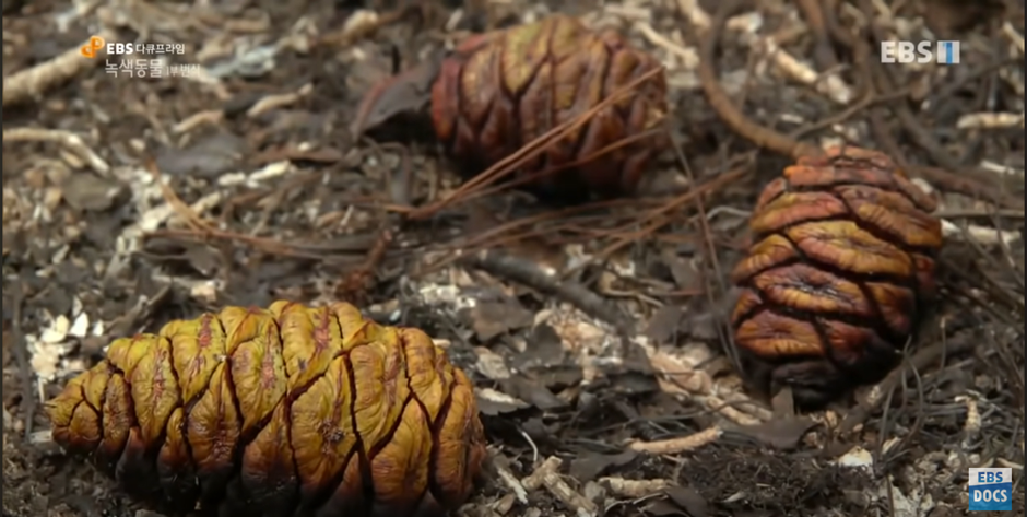 영상의 초반부에는 200도 이상의 온도에서만 솔방울을 열어 번식을 시작하는 식물에 대한 이야기를 시작합니다. 쉬오크(Casuarina sp.), 뱅크스소나무(Pinus banksiana), 자이언트 세콰이어(Sequoiadendron giganteum) 등이 그러한 식물입니다. 이러한 식물들은 산불이 일어나면 솔방울을 열어 씨앗을 퍼뜨리게 되는데, 산불로 인한 상승기류를 타고 씨앗을 더 멀리 퍼뜨리기 위해 씨앗에 날개가 달려있다고 합니다. 또한 산불이 난 후에 발아를 하게 되면 다른 경쟁 식물들이 불에 탄 재를 거름으로 활용할 수도 있기 때문입니다. 미국의 세콰이어 국립공원에서는 자이언트 세콰이어 나무의 번식을 위하여 1년에 한 번씩 소방관들이 불을 내기도 한다고 합니다.