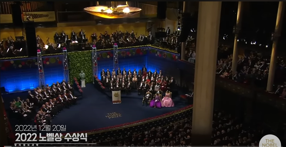 영상은 2022년 노벨상 시상식으로 시작하고 있습니다. 2022년 노벨물리학상은 양자 얽힘 현상에 관한 실험으로 ‘벨 부등식 위배’라는 결과를 입증하여 양자정보과학 분야를 개척한 알랭 아스페, 존 프랜시스 클라우저, 안톤 차일링거가 수상하였습니다.