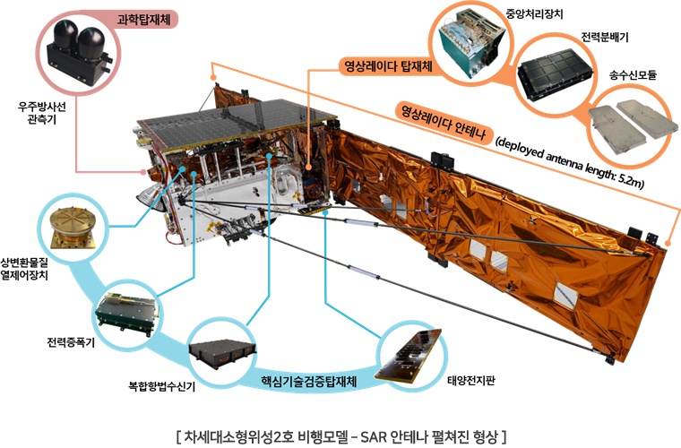 더불어 발사 시간이 오후 6시 24분으로 정해진 것은 카이스트에서 개발한 차세대소형위성 2호를 위한 결정이었습니다. 소형위성이 전력을 많이 소모하기 때문에 오후 6시 24분에 발사하면 위성이 적도의 궤도에 올라가 태양을 바라보게 되어 효율적으로 태양열 에너지를 사용할 수 있기 때문입니다.