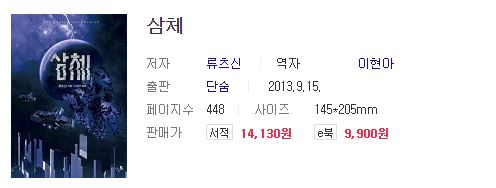 이 책을 읽으면서 나중에 찾아 봐야지 생각했던 SF 소설과 영화가 많지만 그 중에서 가장 인상적이었던 작품은 중국 SF 작가 류츠신의 <삼체(三體)>라는 소설이었습니다. 이 책에 소개된 내용에 따르면 <삼체>는 외계 문명에서 지구를 정복하기 위하여 대규모 우주 함대를 발진시키고 지구에 오는 동안 양성자를 통해 인류를 감시한다는 설정을 바탕으로 문화혁명부터 인류의 근 미래까지 다양한 과학 기술적 상상력이 담겨 있는 작품이라고 합니다. 최고 권위의 SF 문학상인 휴고상을 받으며 최근 세계 SF 문학계에서 주목을 받고 있는데 서양 SF와는 다른 느낌을 받을 수 있다고 합니다.