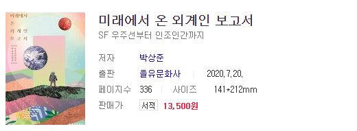 이번에 리뷰할 도서는 박상준 작가의 ‘미래에서 온 외계인 보고서’입니다.