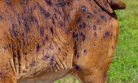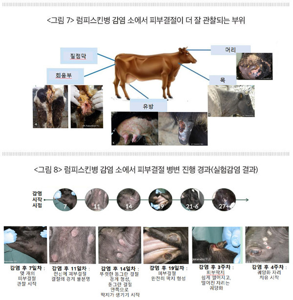피부, 점막, 내부장기의 결절이나 궤양성 병변이 특징인 소의 바이러스성 질병입니다.