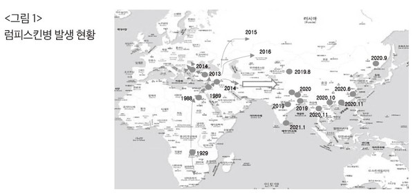 과거에 럼피스킨병은 1929년 아프리카 잠비아에서 최초로 발견된 이래로
