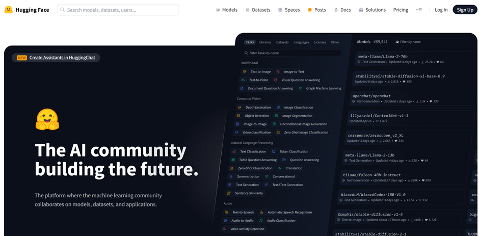 다음으로 많이 사용된 AI 도구는 Hugging Face입니다. Hugging Face는 AI 모델 분야의 깃허브로 오픈 소스 AI 모델과 학습용 데이터셋을 제공하는 곳입니다. 이미 25만 개 이상의 AI 모델과 5만개 이상의 데이터셋을 확보하고 있어 생성형 AI 개발자들이 모이고 있다고 합니다.