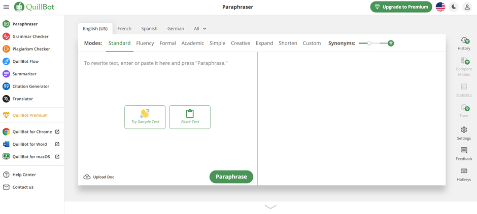 2023년에 3번째로 많이 이용된 AI 도구는 Quillbot입니다. Quillbot은 AI를 활용하여 의역, 번역, 요약, 문법 확인 등 글을 쓰는 작업을 도와주는 AI로 영어 이외에도 다양한 언어를 지원하고 위 그림에서 볼 수 있듯이 간단하게 사용할 수 있다는 장점을 가집니다.