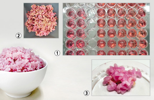 연구진은 세포가 쌀에 더 잘 달라붙게 하기 위해 생선에서 뽑아낸 젤라틴으로 쌀을 나노코팅했습니다. 이어 소 근육과 지방의 줄기세포를 쌀에 뿌린 뒤 실험실 접시에서 9 ~ 11일 배양했습니다.