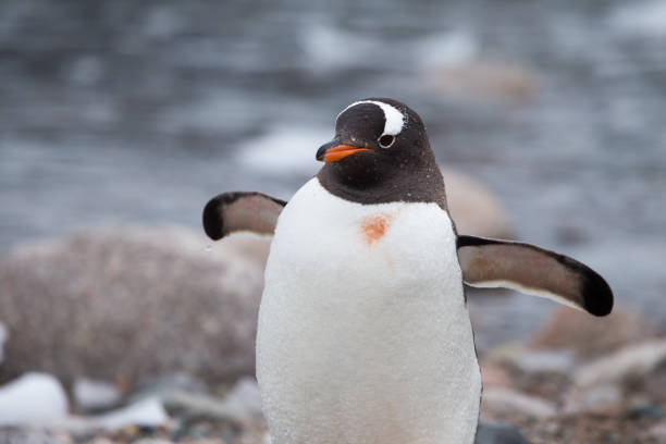 눈 주위에 흰 무늬가 있는 아델리펭귄.