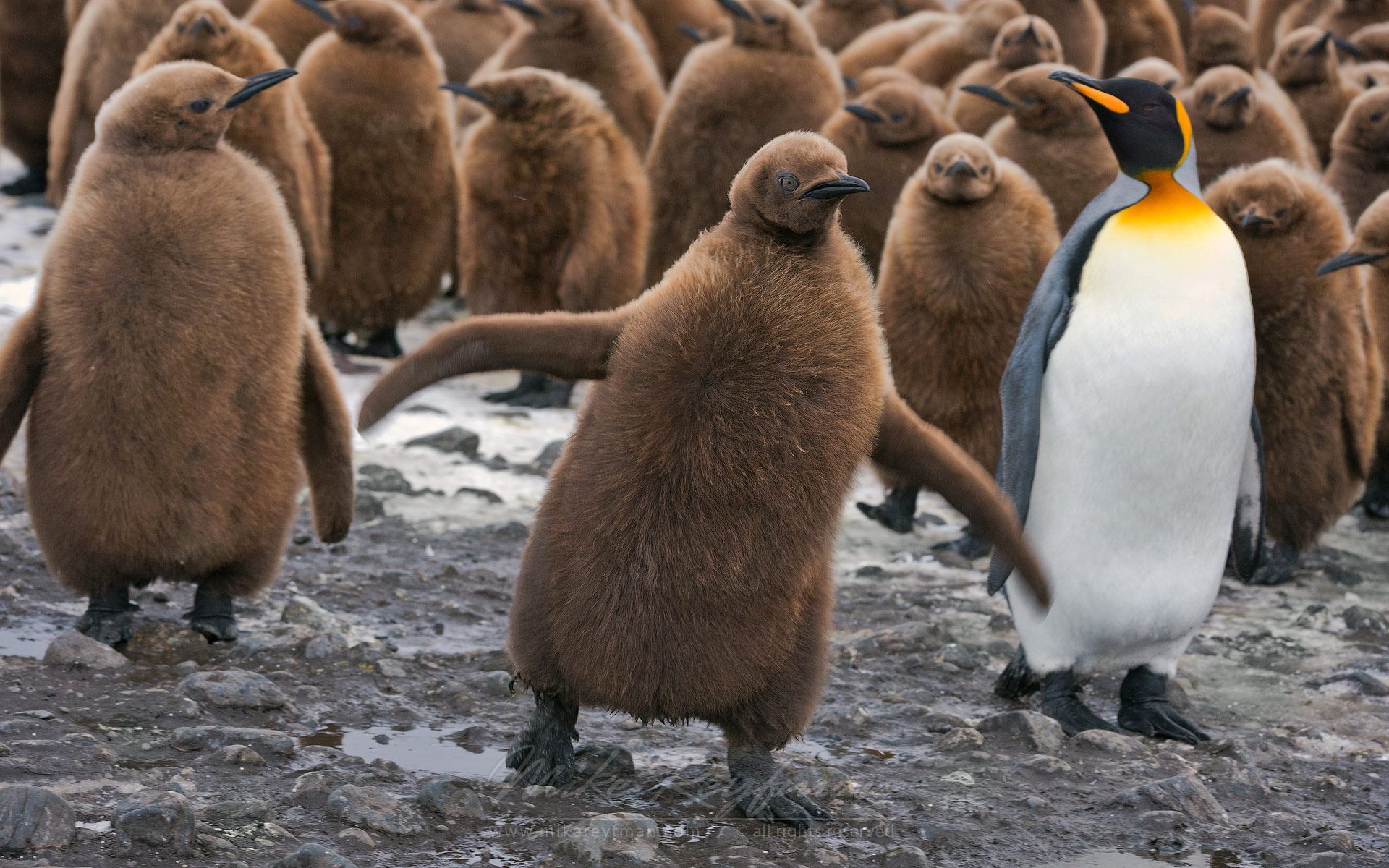 임금펭귄의 새끼는 온몸이 진한 갈색털로 되어 있다고 하네요.