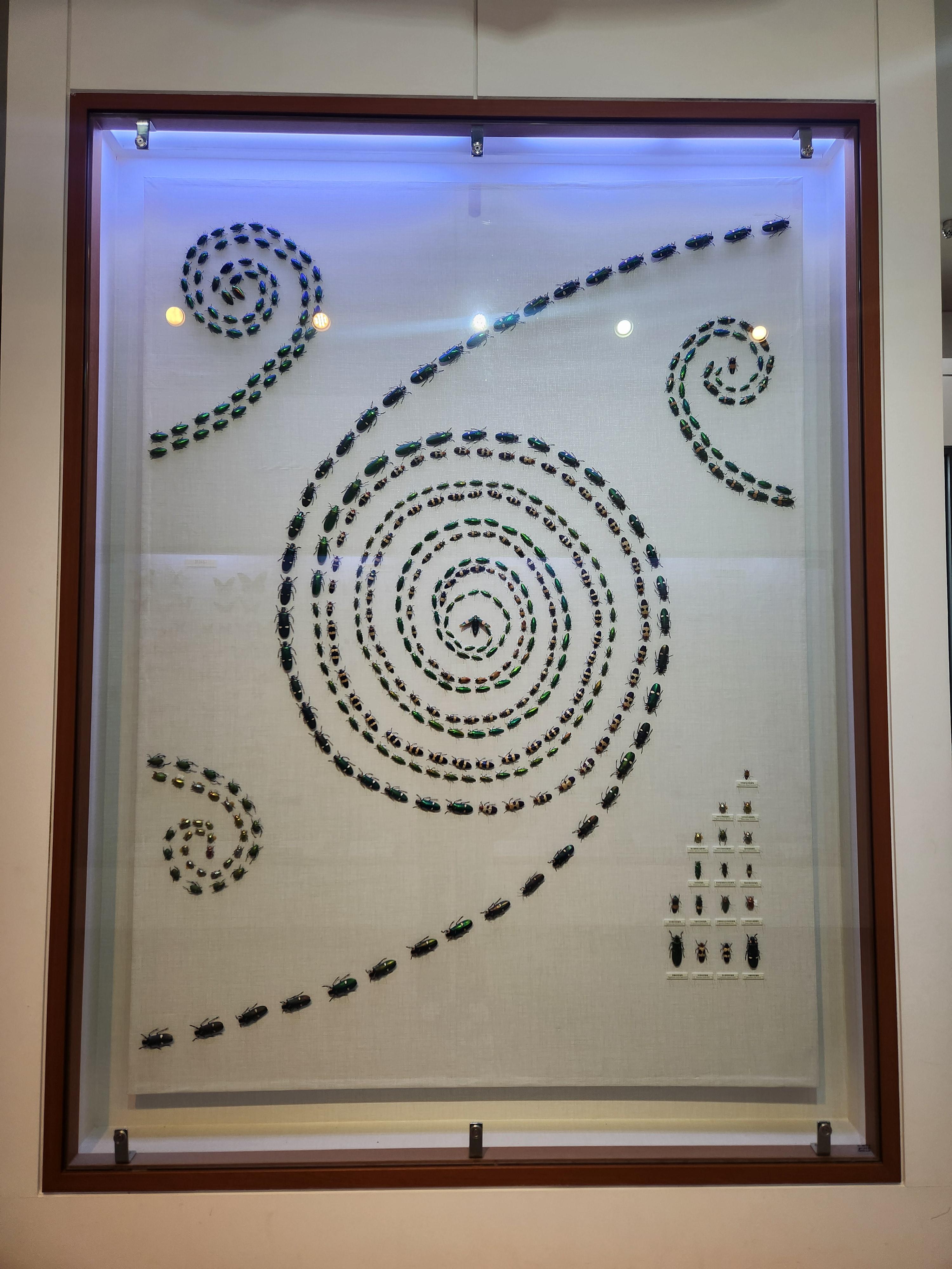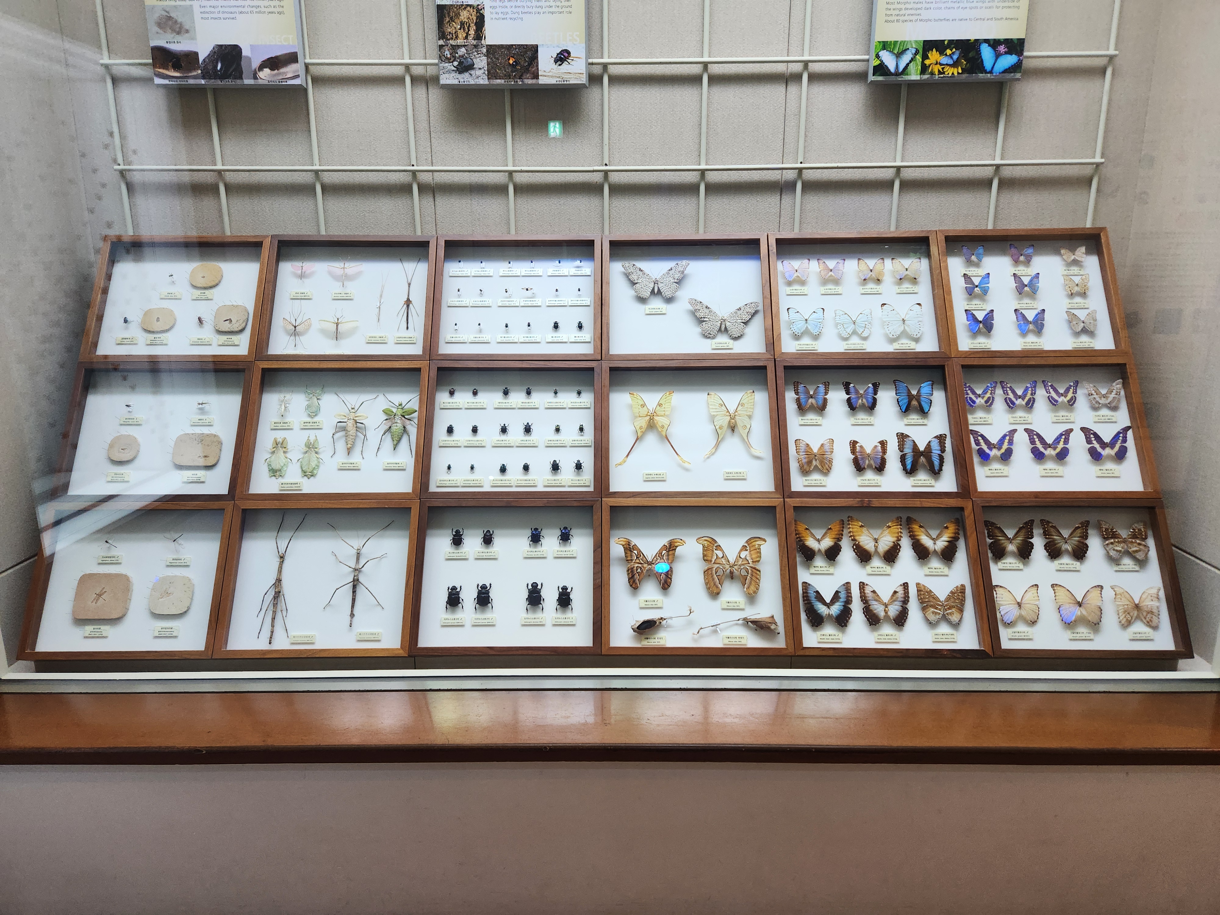 나비 날개의 무늬가 뚜렷한 곤충 표본과 곤충으로 만든 작품을 보니 신기했습니다.