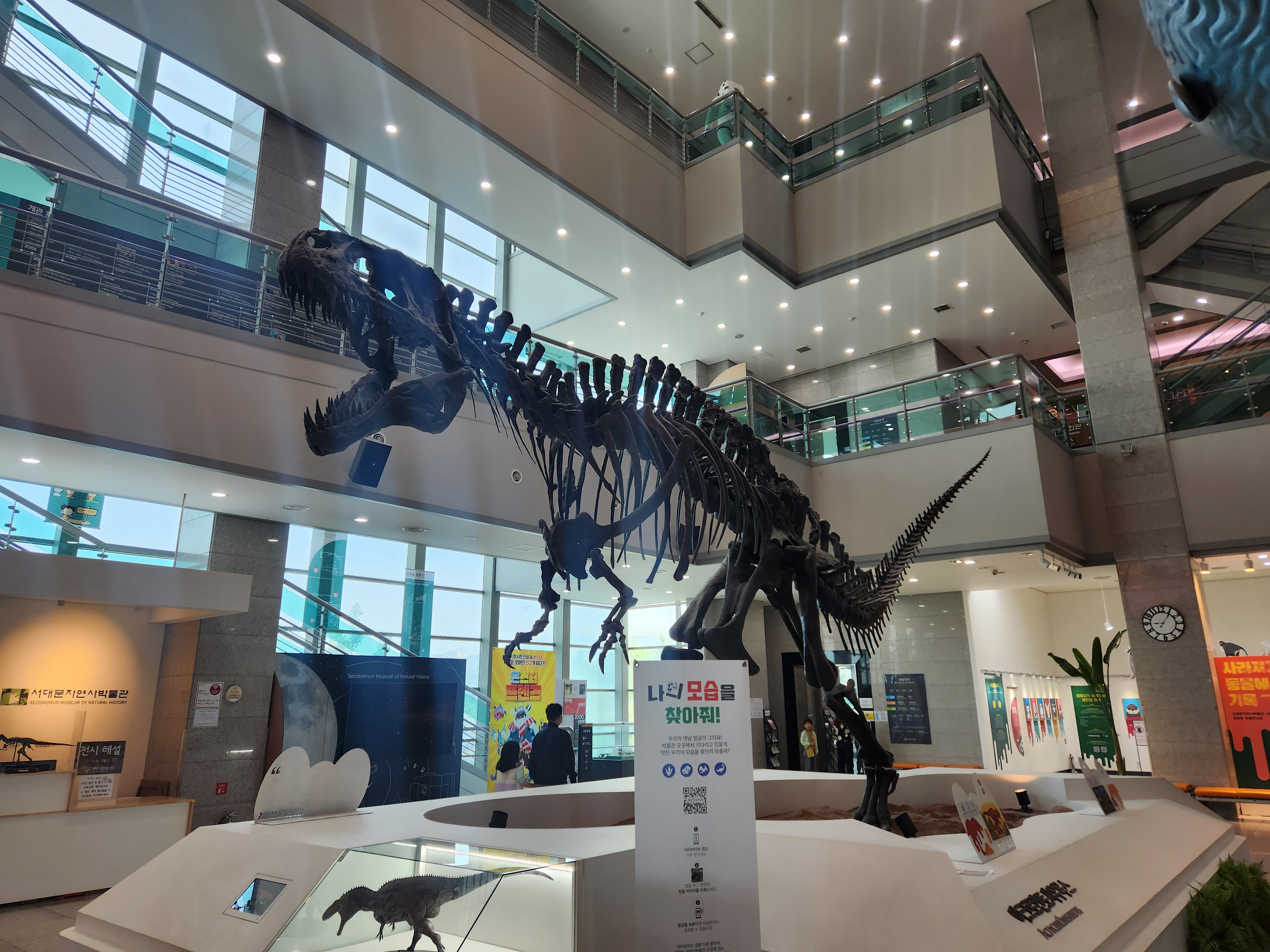 박물관 내부로 들어가면 거대한 티라노사우르스가 사람들을 맞이하고