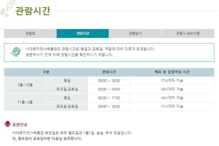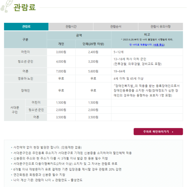 관람료, 관람시간은 홈페이지에 나와있는 것과 동일해 홈페이지에서 가져왔습니다.