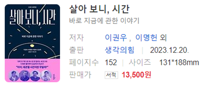 이번에 리뷰할 도서는 <살아 보니, OO> 시리즈 중에서 김상욱 교수와 함께 시간을 주제로 나눈 대담을 실은 <살아 보니, 시간>입니다.