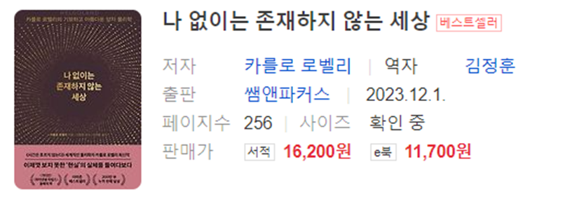 이번에 리뷰할 도서는 카를로 로벨리의 <나 없이는 존재하지 않는 세상>입니다.