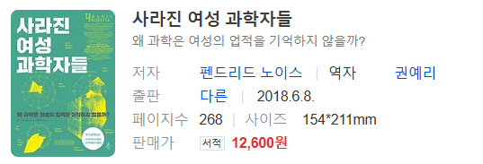 이번에 리뷰할 도서는 <사라진 여성 과학자들>입니다. 이 책은 제목에서도 알 수 있듯이 잘 알려지지 않은 16명의 여성 과학자들을 조명하고 소개하는 책입니다. 이 책에서 소개된 과학자들은 모두 연구를 계속해나가기 어려운 환경에서도 열정을 잃지 않았고, 성공 여부에 상관없이 연구하는 것이 너무 좋아서 몰두하는 모습이 정말 멋있게 느껴졌습니다.
