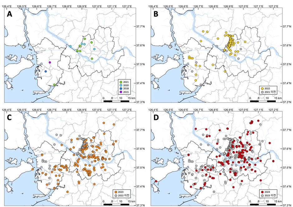 러브버그는 1934년 중국 남부 장쑤성에서 처음 발견됐지만 실제 기원지가 어디인지는 확실하지 않습니다. 이후 중국 남부와 대만·일본 등을 거쳐 국내에서는 2015년 처음 발견됐습니다. 이들은 2015년 국내에서 처음 발견된 이후 2022년부터 개체 수가 폭발적으로 늘어나면서 최근엔 서울 전역과 경기도 일부 지역에서도 관찰되며 시민들의 불편이 커지고 있습니다.