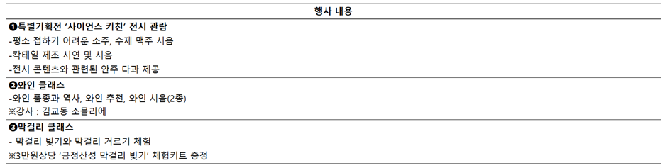 이번 포스팅은 지난 주말 국립부산과학관에서 진행된 성인 대상 특별기획전인 ‘과학 한 잔’에 참석한 후기입니다. 이 행사는 먼저 국립부산과학관에서 진행 중인 특별기획전 ‘사이언스 키친’ 전시를 관람하면서 다양한 술을 시음하는 시간을 가지고, 이후 두 팀으로 나뉘어 ‘와인 클래스’와 ‘막걸리 클래스’를 번갈아 가면서 참여하도록 구성되었습니다.