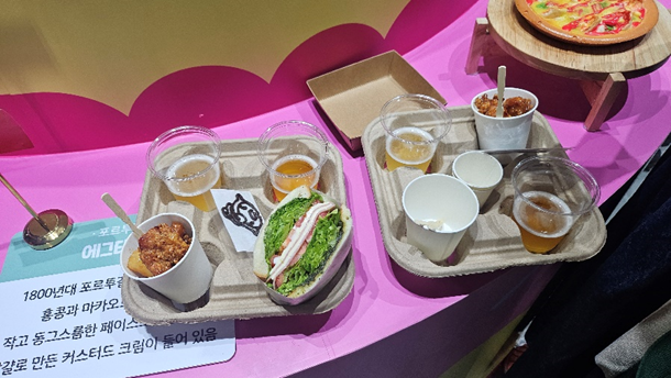 또한 이번 ‘과학 한 잔’이라는 주제에 맞게 술에 대한 설명이 있는 곳 앞에서는 지역 소주나 수제 맥주 등을 시음할 수 있게 되어 있었고, 라면에 대해서 설명이 되어 있는 부분 앞에서는 라면, 로봇을 이용한 음식 조리 (특히 치킨 제조)를 설명하고 있는 부분에서는 치킨 시식을 나누어 주는 등 각자 전시에서 설명된 내용에 맞춰서 다양한 음식을 시식하거나 술을 시음할 수 있는 부분이 좋았습니다. 또한 중간에 칵테일에 들어가는 술의 종류들에 대한 설명과 함께 시음을 할 수 있는 칵테일 강의도 있어 다양한 술과 음식에 대한 내용을 접할 수 있었습니다.