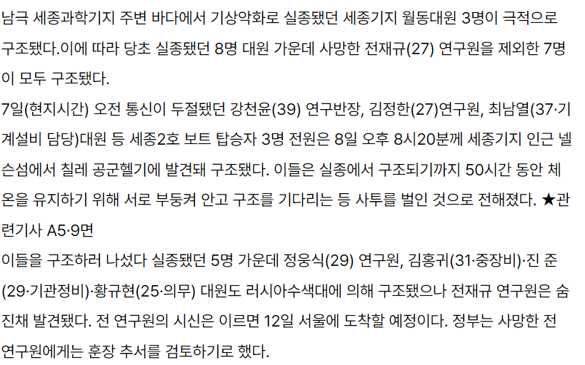 세종과학기지 대원들도 보트를 타고 수색을 하게 됩니다.