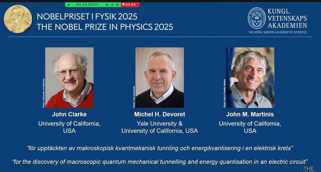 '양자컴 개발 핵심 구현" 美 3인 2025 노벨물리학상 - 헬로디디