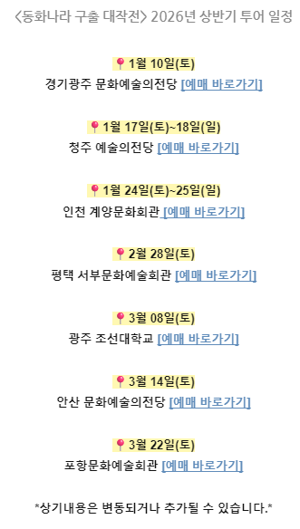 2026년 상반기에 전국 투어 일정이 있더라구요.