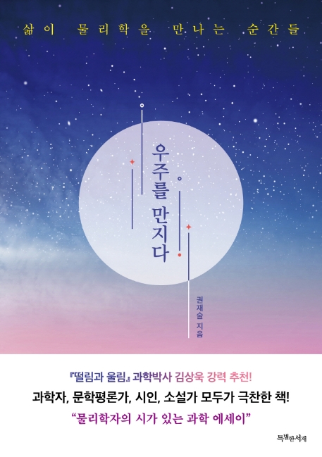 제가 오늘 리뷰할 책은 9월 20일에 발간된 따끈따끈한 신간 <우주를 만지다>입니다. 서점에서 예쁜 표지와 극찬하는 추천사에 눈이 가서 이 책을 선정하였습니다. 이 책은 미시세계(원자)와 거시세계(우주)에 대한 물리학적 내용을 일반인들에게 쉽게 설명하는 에세이 형식을 띄고 있습니다.