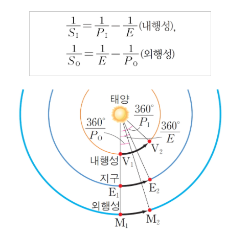 목성과 토성의 대근접은 행성의 회합주기에 의해 목성과 토성이 일직선 상에 위치하게 되는 때가 발생하는데, 이때 지구에서 목성과 토성을 바라보면 두 행성이 매우 가깝게 보이기 때문에 일어나는 현상이라고 합니다. 행성의 회합주기는 원래 태양(S)과 지구(E), 그리고 내행성(PI) 또는 외행성(PO) 일직선으로 위치하는 주기를 나타내지만 목성과 토성의 대근접은 목성과 토성의 회합주기를 기준으로 계산됩니다. 목성과 토성의 회합주기만 생각하면 되는 이유는 목성과 토성의 위치에 비하여 지구는 태양에서 매우 가깝기 때문에 지구의 위치는 관측에 큰 영향을 주지 않기 때문이라고 합니다.