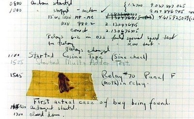 마크 2를 작동시키던 중에 최초의 컴퓨터 ‘버그’가 나타났습니다. 기계의 계전기에 들어가 합선을 일으킨 나방 때문이었지요. (중략) 호퍼는 “그때부터 컴퓨터에 문제가 생길 때마다 우리는 ‘버그가 있다’고 말했다.”라는 글을 남기기도 했지요. p.213