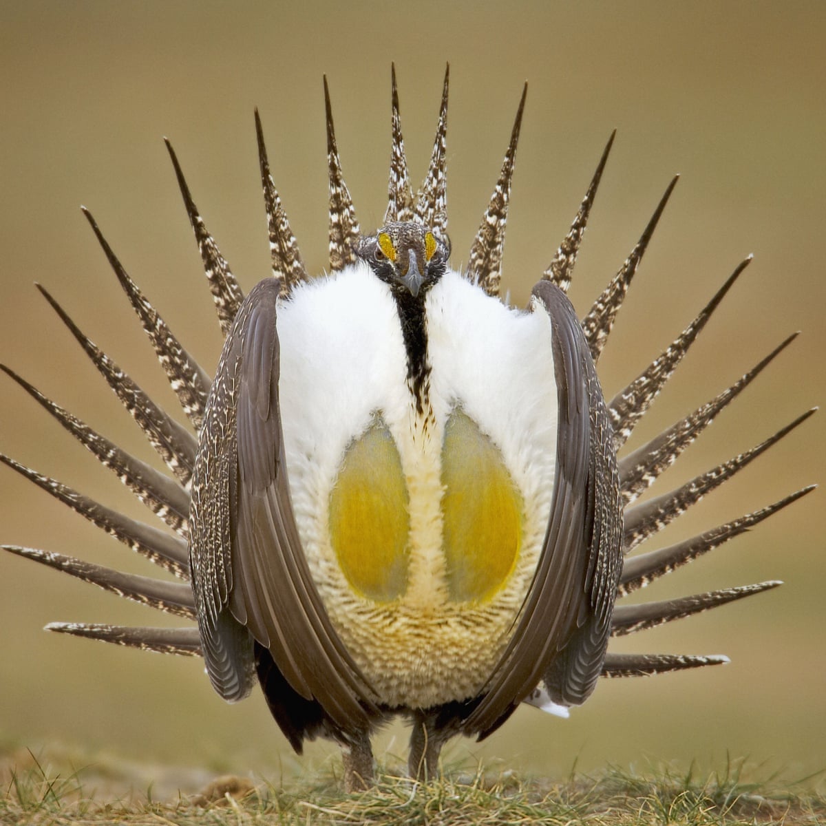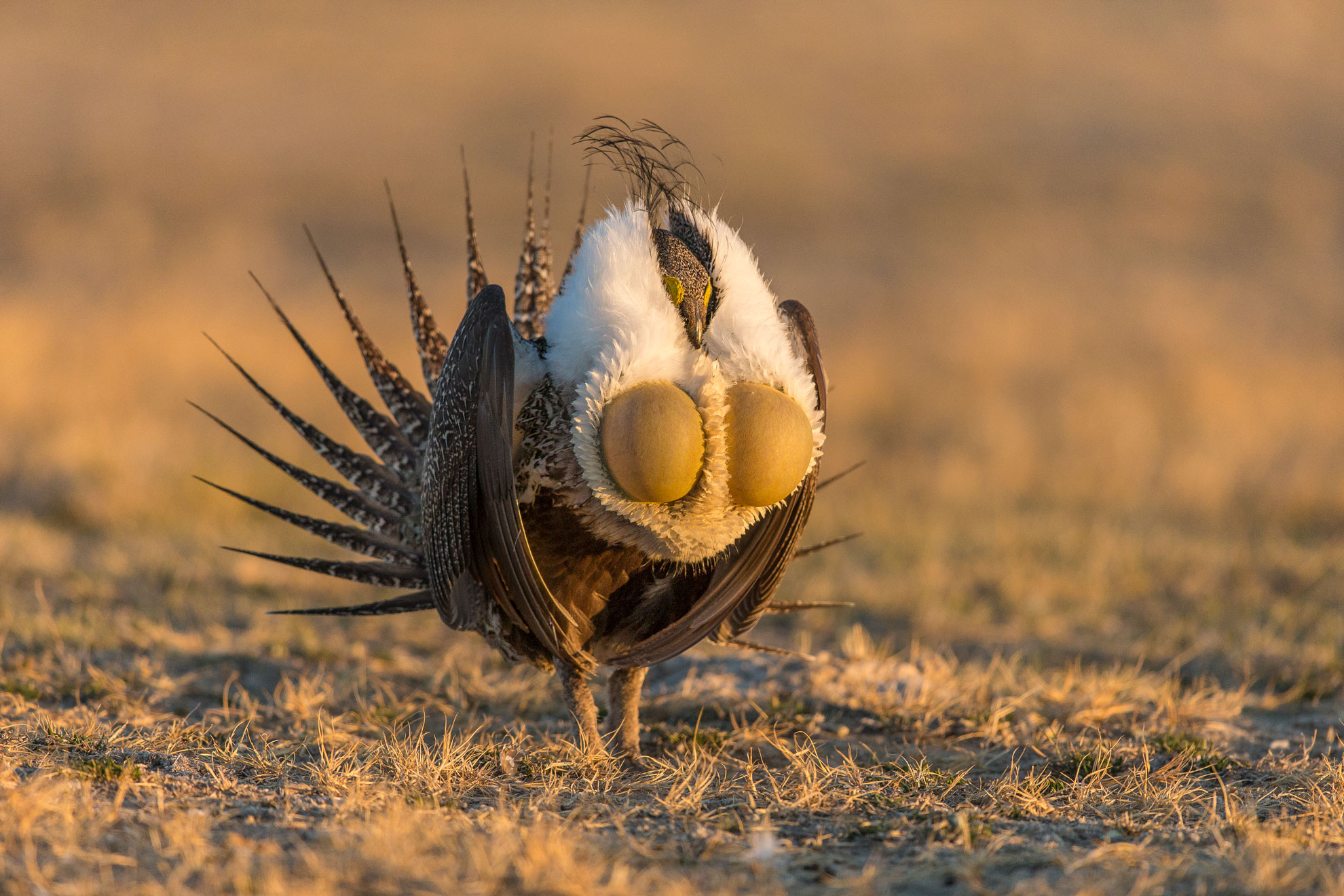 가만히 서 있는 포즈마저 남다른 위 새는 바로 산쑥들꿩 (Centrocercus urophasianus) 입니다.
