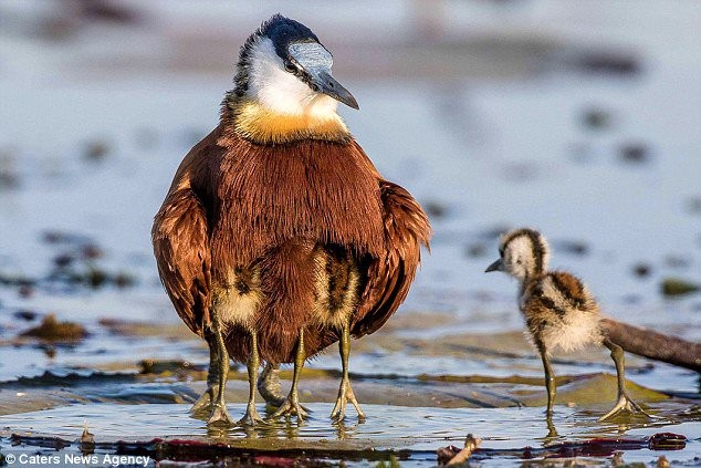 아프리카자카나는 일처다부제로, 암컷이 알을 낳은 후 다른 수컷을 찾아 떠나고 나면 수컷이 혼자 알의 부화와 육아를 책임지게 됩니다. 수컷 혼자 새끼들을 보살펴야 하는 상황에서 새끼들을 직접 들어 올려 빠르게 데리고 이동하는 것은 아프리카자카나만의 생존방식이라고 할 수 있습니다.