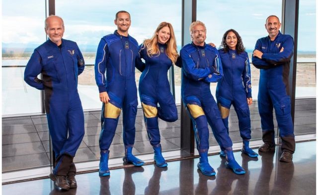 이번 여행에는 브랜슨을 포함해 조종사 데이브 맥케이와 마이클 마수치, 그리고 버진 갤럭틱 책임자 베스 모세, 콜린 베넷, 시리샤 반들라가 함께 했습니다.