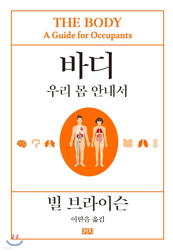 목차: 1 사람을 만드는 방법 / 2 바깥 : 피부와 털 / 3 우리 몸의 미생물 / 4 뇌 / 5 머리 / 6 입과 목 / 7 심장과 피 / 8 몸의 화학 / 9 해부실 : 뼈대 / 10 움직이다 : 직립보행과 운동 / 11 균형 잡기 / 12 면역계 / 13 심호흡 : 허파와 호흡 / 14 음식, 맛있는 음식 / 15 소화 기관 / 16 잠 / 17 거시기 쪽으로 / 18 시작 : 잉태와 출생 / 19 신경과 통증 / 20 일이 잘못될 때 : 질병 / 21 일이 아주 잘못될 때 : 암 / 22 좋은 의학과 나쁜 의학 / 23 결말